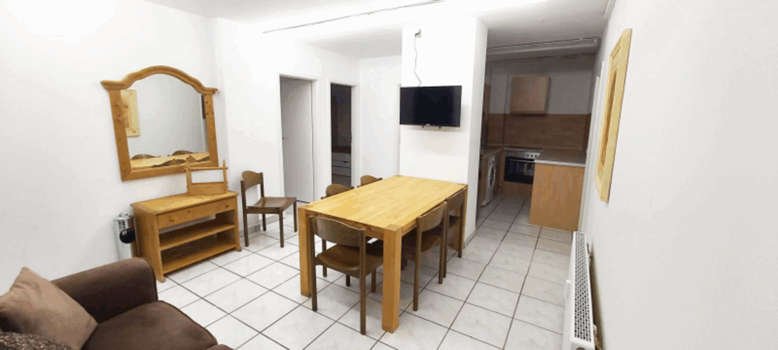 The apartment features a fully equipped kitchen and a separate dining room where you can comfortably enjoy your meals. Furthermore, the central location offers good bus and train connections, as well as shopping facilities in the immediate vicinity.