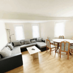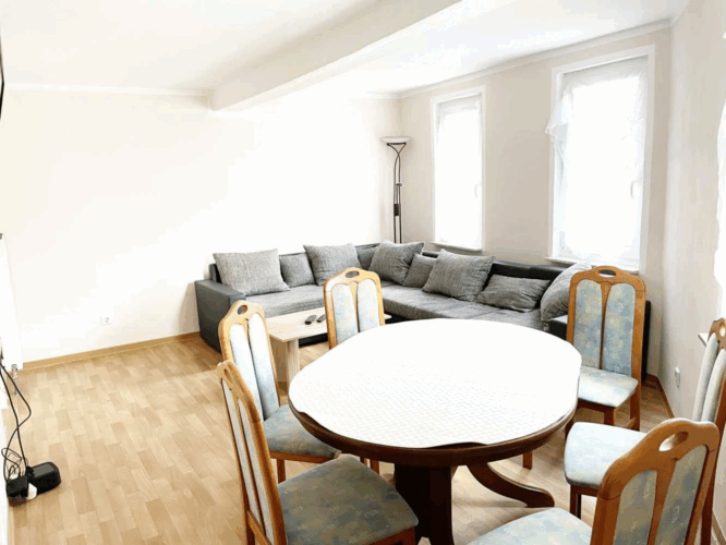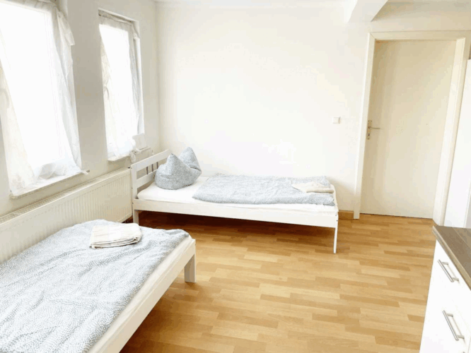 Experience the comfort of our vacation apartment in the heart of Apolda’s center! With a spacious 68 square meters and four rooms, this apartment on the first floor of a four-story apartment building can accommodate up to seven people. Relax in a fully equipped living room, a fully equipped kitchen, and three cozy bedrooms with single beds.